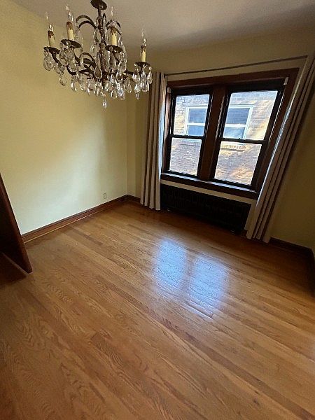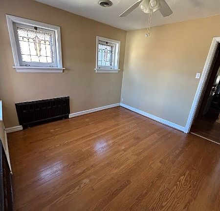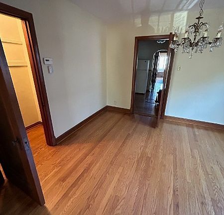 1st floor, 4 room apartment. 1 bedroom, 1 bathroom, livingroom, dining room and kitchen. In addition there is a bonus room off the bedroom that can be used as an office, hobby room, enclosed porch, storage area, etc. Hardwood floors. Refrigerator is brand new. Extra large storage closet. Each tenant has one garage parking spot. There are washer and dryer hook-ups and storage areas for each tenant in the basement. Backs up to Ted Drews. There is a $35 - $50 application fee paid by the applicant. Owner pays water and sewer, trash is free in the city, and the tenant will pay all other utilities. No pets. One year lease is required. After one year, it will roll into a month to month lease with all the same terms, including 30 days notice, by either party, to terminate. Text, email or call with questions.