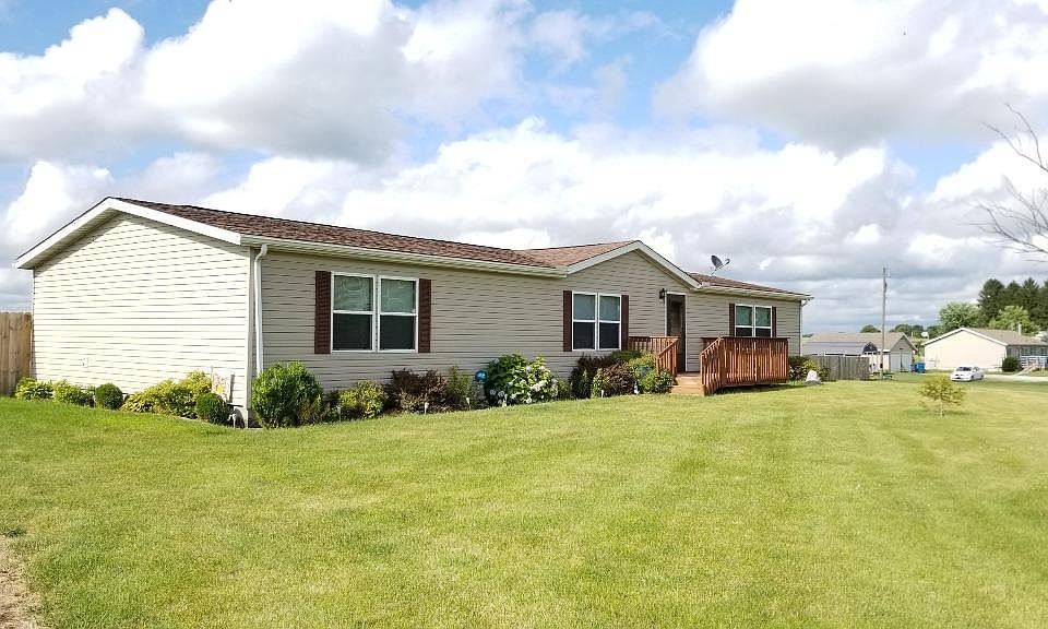 Room to run here not to mention well maintained and showing pride in ownership! Lots of updates have been done in this 1900 sq feet manufactured ranch style home with dry walled walls, solid oak doors, ceramic tiled floors in the entry, and both bathrooms, as well as the shower and tub surround. Updated flooring in the family/great room and kitchen/dining rooms, newer carpeting in the living room and the bedrooms, This ranch style home offers a lot of open space for entertaining, all appliances remain. The exterior of the home has a large deck on the back surrounded by approx 1 acre of privacy fenced yard. There are 2 acres of ground, 32x48 pole barn has concrete floors, is insulated and has a storage loft, perfect space for someone who has hobby's or toys! Hot water heater and water softener are also newer! Located within the New Prairie school district this home is a must see!