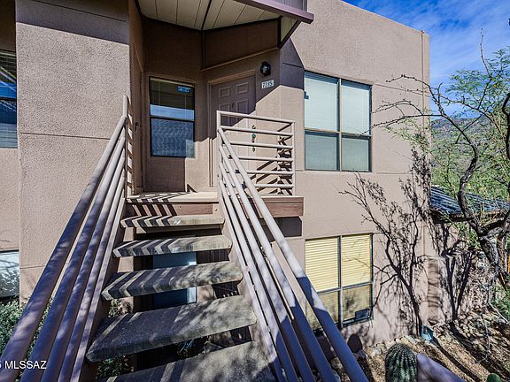 Views! This condo is a 2nd story, end unit, perched at the highest point in the complex. You'll enjoy a full, east to west view of the Catalina Mountains from the back porch and gorgeous city views out your bedroom window! This complex offers resort-style amenities: 2 pools, clubhouses and state of the art gym, all at the base of the Catalina Mtns w/private access to Ventana Canyon