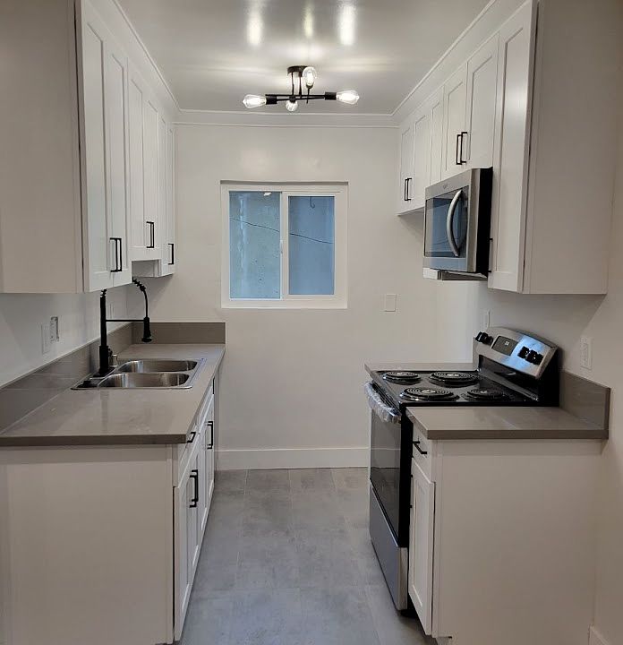 Newly remodeled Studio. Newly painted. Custom kitchen cabinets with quartz countertops. Stainless steel appliances provided. Recessed lights. High-end light fixtures. Custom bathroom vanity. Tile flooring in kitchen and bathroom. Shower wall tile. Hardwood laminate floors throughout. Crown and floor molding. Laundry on-site. Street Parking.