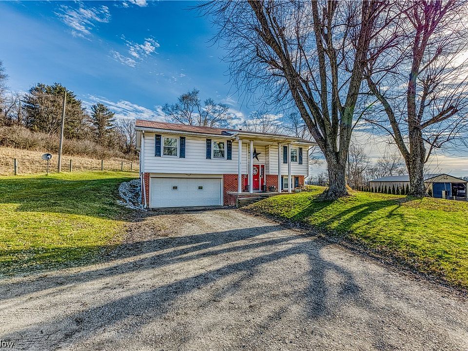 Bi Level home with lots of charm. Home is nicely situated on over a half-acre to give views and privacy. You will find 2 set of steps upon entering the home. One leading to the main level where you will find a charming Livingroom, with an electric fireplace and views from the newer windows. The perfect spot to sit down and relax. Adjoining is spot for a dining table, that leads you right into the open kitchen. New floors, lots of counters and cabinets too. Has newer appliances and plenty of room for the family. Take a step outside thru the double door to enjoy the large deck and hot tub. Another perfect spot to just unwind and enjoy the scenery. Take a look around at the wildlife and farm animals while soaking in the hot tub. Back inside, on the main level is 3 bedrooms and 1.5 baths. A couple of hall closets for additional storage. Back down the stairs you will find another room that can be used for a bedroom, family spot, office or whatever you want, A large separate laundry room downstairs is just fantastic. Loads of room. You will find a spot for a car possibly two, storage and a nice utility room. The yard is perfect for a garden, kids, pets, a pool or even an additional Buidling. Home has newer flooring, a brand-new water tank. Windows are 2 years old and a newer AC (6 yrs.). Move in and enjoy. Close to East Guernsey schools and a couple miles to Salt Fork Lake. Conveniently located close to 70, 22, 40,