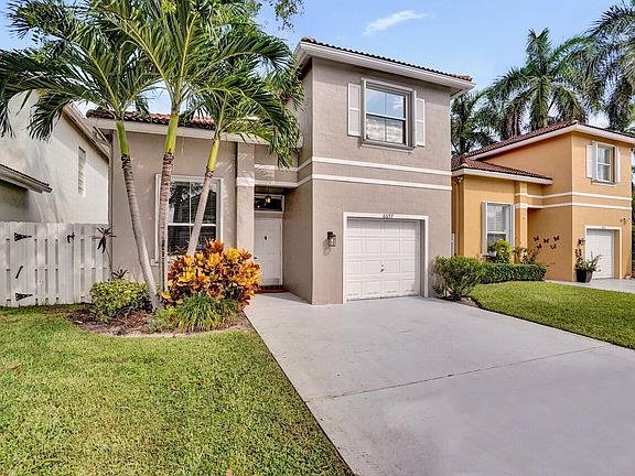 Welcome home to your dream property in the highly desirable, gated community of Winston Trails. Located in the Greens Village subdivision, this beautifully updated Montreal model offers over 1,600 square feet of living space with 3 spacious bedrooms, 2.5 bathrooms, and a private, fenced-in lot featuring a sparkling inground pool. From the moment you walk in, you'll be impressed by the soaring cathedral ceilings, stylish plank tile flooring, and upgraded hi-hat lighting that create a bright and inviting atmosphere. The kitchen has been completely renovated with modern shaker cabinetry, sleek quartz countertops, and stainless steel appliances, making it perfect for both everyday living and entertaining. The primary suite, conveniently located on the first floor, features new flooring, a custom built-out closet, and a stunningly updated en-suite bathroom. Upstairs, you'll find two oversized guest bedrooms along with a fully remodeled guest bathroomevery inch of this home has been thoughtfully updated with no detail overlooked. Outside, the private backyard is a true retreat with a beautiful pool, lush landscaping, and complete accordion shutters for peace of mind.