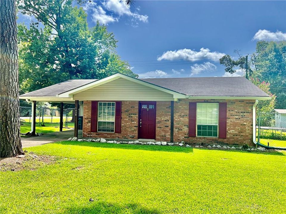 Beautiful! Beautiful! Beautiful! Welcome to this meticulously maintained brick bungalow in desirable Pinebrook Estates in Ball, LA. This charming home on a large corner lot was just freshly painted, cleaned, and readied for you. All you have to do is move on in! The spacious interior features wood look vinyl throughout the living room, hall, and primary bedroom suite. The kitchen with its eat-in dining area has granite tile countertops, a brand new range, and a portable dishwasher that doubles as a prep bar. Double French doors open onto the large fenced backyard with shed. You'll enjoy relaxing in this peaceful space! The 3 bedrooms are spacious and light-filled; each has a ceiling fan. The full bath in the hall is spacious and attractive. You'll love the large walk-in closet in the primary bedroom with its en suite 1/2 bath. Don't miss this gem of a property in such a convenient location. As a bonus, this property is eligible for 100% rural development financing for qualified buyers. Schedule your tour today!
