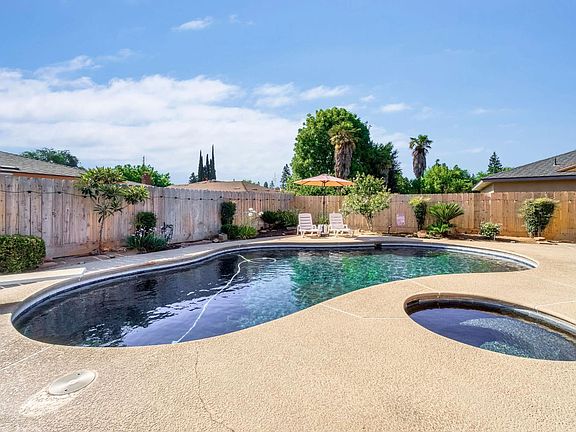 Welcome to your future home, perfectly situated near some of the best amenities Fresno has to offer.As you step through the front door, you're greeted by a spacious layout featuring a versatile family room and a formal dining room or office on either side. The heart of the home opens up to a large living room with brand-new French doors leading to a covered patio ideal for relaxing or entertaining by the sparkling pool on warm summer days.The open-concept kitchen is both functional and family-friendly, creating a perfect space for gatherings and daily living. This home offers three comfortable bedrooms, two bathrooms, and a generously sized laundry room for added convenience.The beautifully landscaped backyard provides plenty of space for outdoor entertaining, whether you're hosting a barbecue on the lawn or enjoying shade under the patio cover.Recent upgrades include:Fresh interior paint for a bright, modern feelRecessed lighting throughout the homeNew ceiling fansNew side and half-back fencing with a secure gateFour-camera security systemNew pool sweep and timerUpgraded sprinkler control systemStylish new window shutters in every roomSolar: One solar panel system is a PPA with 21 years remaining. You only pay for the kWh it produces at a low rate that increases 2.9% per year. The other solar panel system lease is up in Feb 2026. There is an option to buy it outright for $1500. On average, this system produces around 700kwh/month.Recent home/pool & spa/pest inspections available. House is sold as-is and seller will not pay for any repairs.This move-in ready home has been thoughtfully updated and well cared for. Schedule your private showing today and come see all it has to offer!