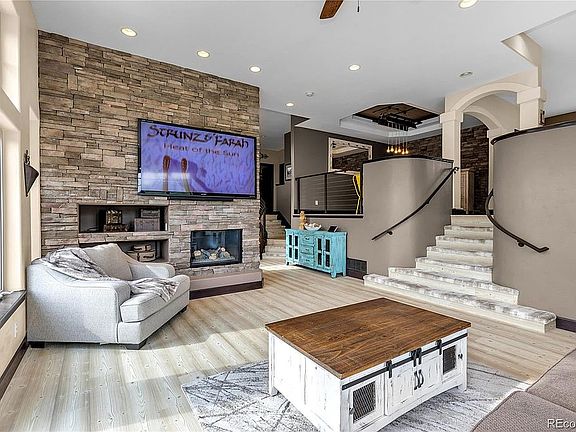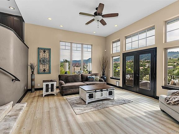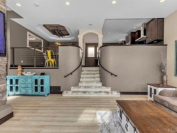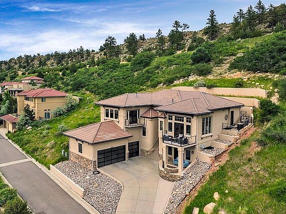 Welcome to your dream home with a view! Nestled in the exclusive Roxborough Park community, you will wake up to views of beautiful red rocks outside your master retreat with private balcony. This completely updated home boasts some of the best views and sunsets in the neighborhood from nearly every room, both of its private balconies, and the walkout basement patio with fire pit. Built into the hillside, this home is architecturally impressive with beautiful exterior lighting. The main living room has soaring volume ceilings, electric shades, and is open to the renovated kitchen and dining space. Stainless steel kitchen appliances and more views, from the dining room table to entertain your guests or enjoy at every meal. The oversized master bedroom is filled with light, a wet bar, mini fridge, and double walk-in closets. The custom bathroom will be your favorite retreat, with a standalone tub and walk-in shower. A second bedroom completes the main level with its own en suite bath, and two additional bedrooms on the lower level, sharing a Jack and Jill bathroom- an entertainer's dream. The lower level hosts a home theater separate from a walkout game room with wet bar. Perfect location, with quick access to everything you need and at the same time tucked away. Previous owners updated flooring, paint, & stucco and current owners installed high-end water filtration system.