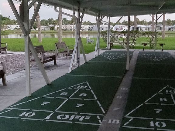 Swimming pool, shuffleboard courts, and walking paths