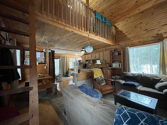 This extremely well built cabin overlooks the Marengo River on 43 acres of picturesque land. With a private drive along the river, and miles of trails, a bridge across the river, one of the most beautiful, two-story fireplaces you've ever seen, and a truly incredible setting, this is a cabin that will steal your heart. Quality woodwork everywhere, dual paned windows, a lofted bedroom with a second sleeping area upstairs, and a full size sleeping area on the main level are only the beginnings of this wonderful getaway. Additional quality features include a cabin wired with lights and outlets, a generator that is sold with the cabin, a wraparound, fully screened three-season porch overlooking the river, a fully plumbed bathroom (no well, but a holding tank that is installed) and a brand new 30 x 30 metal sided and roofed toy barn to store your equipment. A refrigerator and gas stove is also included. Your Northwoods lifestyle awaits.