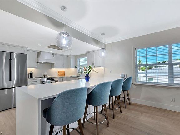 Step into your dream Naples winter in this fully remodeled 2-bedroom, 2-bath condo, perfectly located at the coveted intersection of 5th Avenue & 3rd Street just steps from pristine beaches and the vibrant energy of downtown. Available for the ideal seasonal rental from January 15 April 15, 2026, this residence offers a rare combination of luxury, comfort, and exclusivity in a secure building with only 18 units. Inside, natural light fills the open-concept living space, flowing seamlessly from the spacious living room to the dining area and sleek, fully equipped kitchen perfect for relaxing or entertaining. Both bedrooms are generous retreats, including a master suite with a beautifully designed en-suite bathroom. Enjoy your morning coffee or evening cocktail on the private balcony overlooking lush landscaping and city views, or stroll just steps away to the boutique shops, galleries, restaurants, and the world-famous beaches. The building's intimate size, secure entry, and sparkling pool create a sense of peace and privacy rarely found in downtown Naples. Whether you're escaping winter elsewhere or seeking the ultimate seasonal getaway, this remodeled downtown Naples condo offers the perfect blend of beachside living, urban convenience, and luxury. Experience the unmatched beauty, warmth, and lifestyle of Naples winters your dream escape awaits.