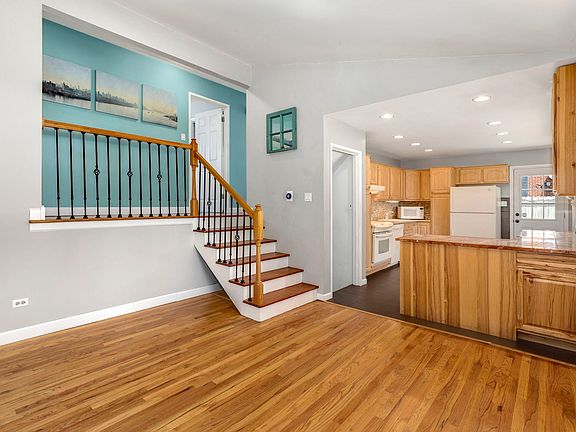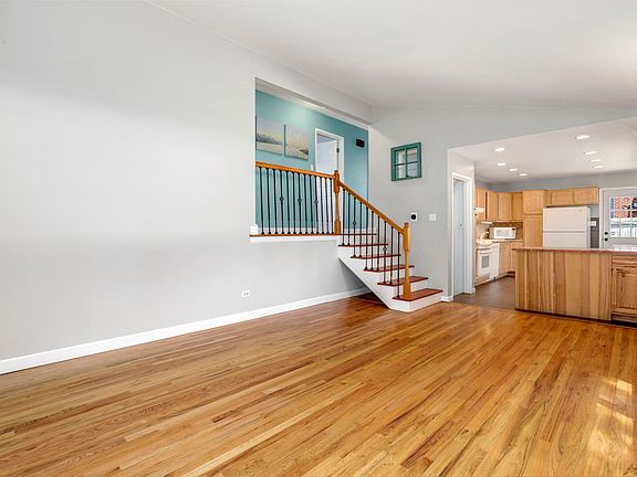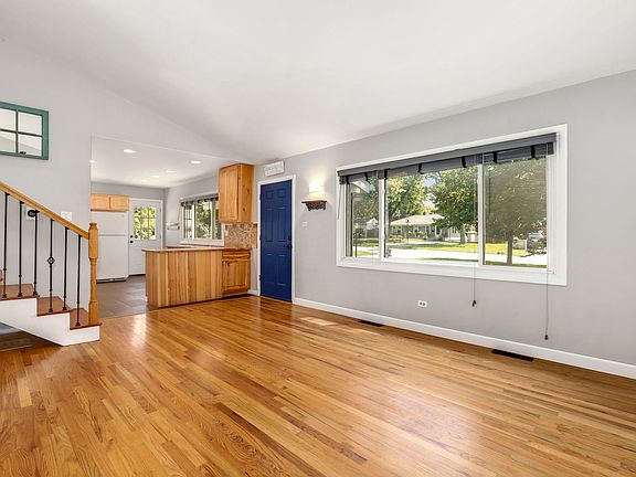 Welcome home to your charming 3BR, 1.5 Bathroom tri-level nestled on nearly .5 acres that features a large 4 car garage! The home welcomes you into the family room that boasts hardwood floors and vaulted ceilings. The adjacent kitchen features an open-concept flow with porcelain tile floors, backsplash and plenty of cabinets for ample storage. Upstairs offers 3 generously sized BRs, with continuous hardwood floors as well as an updated full bathroom (2022). The lower level offers more space for living and storage, featuring a utility room, crawlspace, and finished room that's perfect for a second living room, home office, gym, theater, or even to be used as a 4th BR. Enjoy the outdoors on the covered patio in your huge, nearly .5 acre yard! The huge 4 car garage is ready to hold all of your toys or help you take on your next project in the workshop. You'll find a second large deck area to relax or entertain at the back of the garage with a hot tub! So close to schools, shopping, parks/paths/The Great Western Trail, expressways, Metra and so much more!
