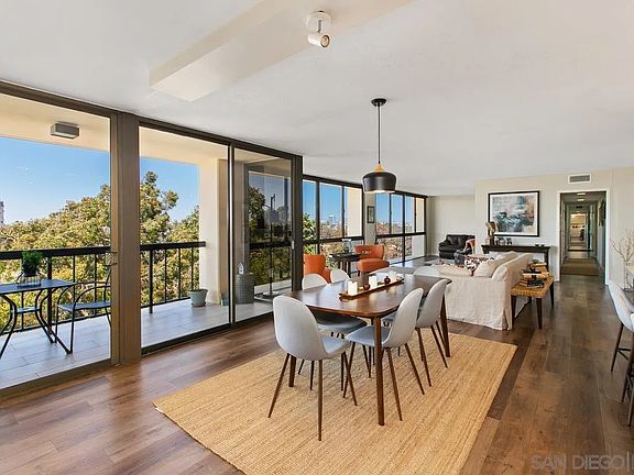 Overlooking San Diego, this beautifully remodeled 3 bedroom, 2 bathroom condo is located in the historic Del Prado building. With the City of San Diego Historic Mills Act designation already in place, there is a tremendous property tax savings when buying at Del Prado. Located just across the street on the north side of Balboa Park, the building is in the heart of the city. A short walk to all that Balboa Park, Bankers Hill and Hillcrest have to offer, this is a wonderful place to call "home." It features stainless steel appliances, LPV flooring, and floor to ceiling windows. With gleaming natural light and an open concept layout, this is a truly unique home in a truly unique building.