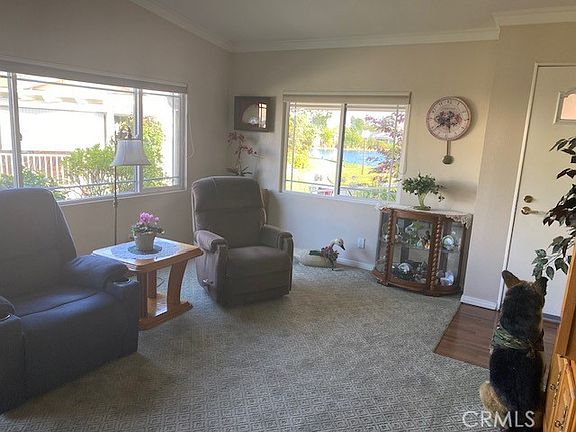 Beautiful Home with LAKE VIEWS in Lake Park Brea - This home has been lovingly cared for by it's owner - The upgrades include textured walls and ceilings, dual pane windows, updated kitchen and both baths, ceiling fans, newer A/c and Furnace, Granite Counter tops, Crown moldings, lighting, doors, window coverings, and more! - The exceptional location allows Lake and Fountain Views from the patio, living room, kitchen, and Family room - The Front patio has enough room for the whole family or friends to visit, BBQ, dine, or just sit and enjoy the view and afternoon breezes - The Living Room has lots of room for entertaining, views to the neighborhood and the Lake with it's Fountains - The Dining Room comes with a beautiful built-in hutch - The Family Room is adjacent to the Kitchen and has room for whatever you choose - There is a large slider to the patio for easy access - The Kitchen has loads of cabinets and Granite counter tops with space for plenty of uses - The Main Suite is quite roomy and has a large closet with mirrored doors - This closet has loads of storage and hanging space for all your fashions - The attached bath has additional storage, an updated vanity with plenty of counter area, and the beautiful shower - The Second Bedroom is quite large and has a double closet for loads of clothing and storage - The updated Guest Bath has a large EZ step into shower and access from the Guest bedroom - It is also available for Guests to use without the need to enter through the Bedroom - The Laundry Room is very roomy and has built-in cabinets, a Desk area with loads of space, the washer and dryer, which are included, and a door to the "rear" area with access to the Sheds and parking - The covered carport has Side-by-Side parking - The shed is newer and has some shelving - Enjoy the cool afternoon breeze while others are walking their pets around the Park or driving by in their golf carts. Stroll the Scenic greenbelts and winding walkways throughout the Park which lead to the Sparkling Lake with Fishing and Clubhouse nearby - Enjoy your Leisurely Lake Park Lifestyle! Fun includes: Parties in the Recreation Pavilion, Bingo, Bunco, Fishing, Library, Billiards, Exercise Room with newer equipment - Dinner Events - Potlucks, Casino Outings, Pool & Spa, Water Aerobics, watching the Seasonal Parades in the Park, Tennis, Pickle-ball, and more!