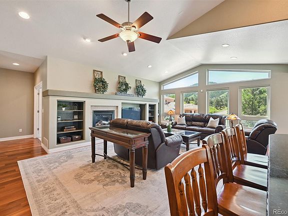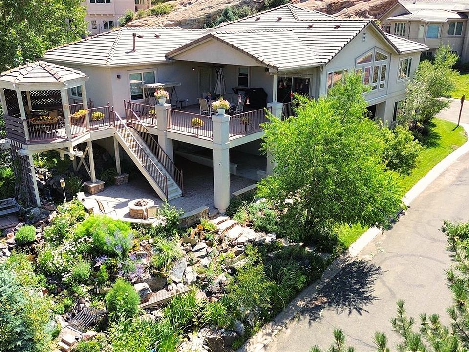 Welcome to your stunning 5-bedroom home in the highly sought-after Roxborough Park! Upon entering you’ll find an inviting open floor plan with real hardwood floors, living room with a gas fireplace, and  kitchen featuring an island, granite countertops, double oven, stainless steel appliances, and the bonus of an instant hot sink. The abundance of cabinets and three pantries provide tons of storage space. Step out onto the Trex deck which also boasts a well-lit gazebo - the perfect place to entertain. On the main floor you have the primary suite with a spacious walk-in closet and 5-piece ensuite bathroom that includes a jet tub for ultimate relaxation. To finish out the main floor you have another bedroom with its own walk-in closet, a full hall bathroom, and an office with an attached half-bath that leads to the mudroom. The heated garage has epoxy flooring and large windows providing natural light, & a workshop area measuring 15'x 5.' Save your back with the HEATED driveway that melts away the snow during the winter! Downstairs you'll find the fully finished walk-out basement with large family room featuring a cozy gas fireplace & wet bar. There is another generously sized bedroom complete with an ensuite ¾ bath offering privacy and comfort for guests or family members. Two additional bedrooms, full bathroom, & bonus room – perfect for an exercise room or office. There is also a separate 275 sq. ft. heated storage room under the garage. The outdoor spaces are captivating! A patio off the family room & an expansive deck feature a natural gas fire pit. The additional hillside lot is a picturesque extension of your property. With its flowing streams, charming ponds, & artful landscaping, it's your personal oasis. As if that weren't enough, the breathtaking mountain & red rock views provide a backdrop that's nothing short of awe-inspiring. This is more than just a home; it's a gateway to refined living amidst natural beauty. This is one you don’t want to miss!