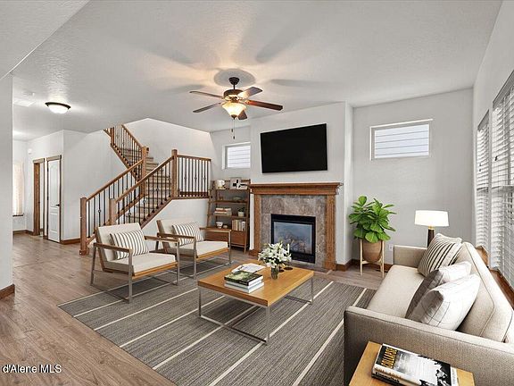 Beautiful 3 Bedroom, 2.5 Bathroom home offered in Lake Forest West, in Coeur d'Alene! Nestled in the heart of North Idaho, this stunning home offers a perfect blend of modern design and natural beauty. A large kitchen island provides ample space for cooking and entertaining. Cozy up by the stone gas fireplace, a perfect focal point in the living area. The sophisticated wrought iron railings add a touch of elegance to the staircase. Additional features include A/C, a 2-car garage, upstairs loft area, covered back patio, and landscaped front and backyard.