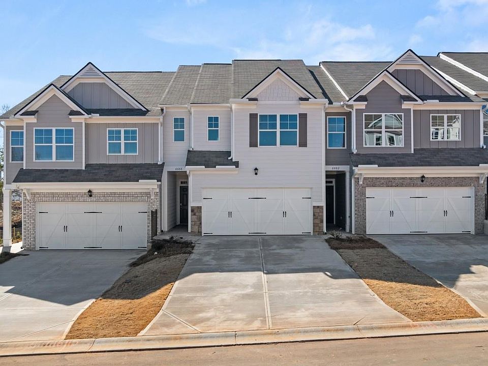 Flowery Branch, GA is home to this new construction townhome, 6662 Corryton Street, in our desirable Waypoint community! The Sudbury is a two-story floorplan featuring 3 bedrooms and 2.5 bathrooms with a 2-car garage. As you step into the home, a long foyer welcomes you and leads into the open-concept main living area. The large family room is the perfect place for family and friends to gather. The family room flows into the well-appointed kitchen with a center island, quartz countertops, subway tile backsplash, white shaker-style cabinetry, and stainless-steel appliances. A dining area directly off the kitchen provides space for a dining table and opens onto the back deck or patio. There is also a half bathroom tucked away on the first floor. Up the stairs you'll turn from the landing into the primary suite. This spacious bedroom is complimented by the en suite bathroom featuring a separate tub and shower, dual vanity, water closet, linen closet, and a roomy walk-in closet. 2 secondary bedrooms, the laundry room, and an additional bathroom, also with dual vanity, round out the upper floor. Give us a call at Waypoint today to schedule your tour of 6662 Corryton Street in the desirable Flowery Branch, GA!