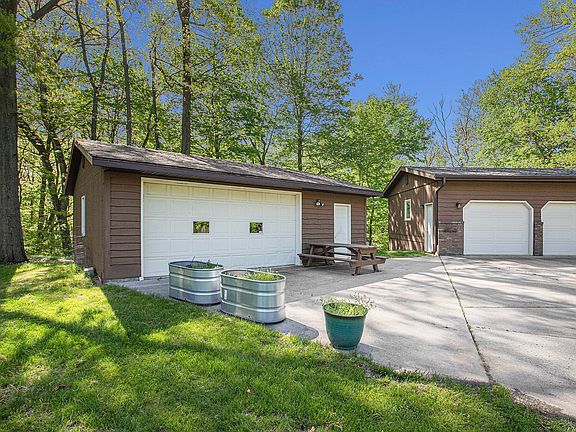 Secluded riverfront home surrounded by an abundance of wildlife perched on a bluff overlooking the west bend of the Galien River. This well constructed 4 bedroom 2 bath includes a walkout rec room with fireplace, attached 2 car garage, and additional garage/workshop. Plenty of room for a pool and guest house. Many updates to include: city water, Comcast available at road, new windows / front door, new garage doors, newer electric water heater, kitchen and appliances, newer roof, new flooring kitchen/dining, insulated garages with heat, and cedar decking. Convenient location within 10 minutes to shopping, local orchards, wineries/breweries.