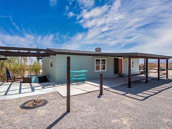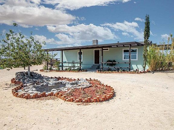 Gorgeous forever view property at the top of North Joshua Tree located around protected government open space land. Seller Financing available short term with 20% downpayment @ 6% interest! This property includes a remodeled home with 2 large bedrooms and 2 full baths plus the original cabin which is currently being utilized as an art studio and workspace. New appliances, fixtures and features including a brand new AC/Heat system, washer & dryer, refrigerator, stove, kitchen cabinets, sink, garbage disposal, ceiling fans, quartz countertops, and water heater. 2.5 acres fully fenced, cleared, and groomed. High ceilings and new laminate flooring. Spacious living room opens to deck with skyline vistas of The Bullion Mtns, Copper Mtn, The Little San Bernardino Mtns, and Mt Nebo. New roof on the approximately 600sf studio cabin/casita with a rear backroom that once had a kitchen and bathroom that's now a storage room. 3 storage sheds at 450sf each with 15ft x 30ft dimensions. Spacious shaded concrete patios are perfect for entertaining and enjoying the breathtaking sunsets. Hot tub in the breezeway. Starry nights. Horse property. Ample parking. Approximately 27.5 acres of open space BLM land directly south offers plenty of room for riding horses, hiking, and dog walking. About 19 miles to the Joshua Tree National Monument were in 2022 over 3 million tourists visited. Hot vacation area. 47 miles to Palm Springs. 141 miles to LA.
