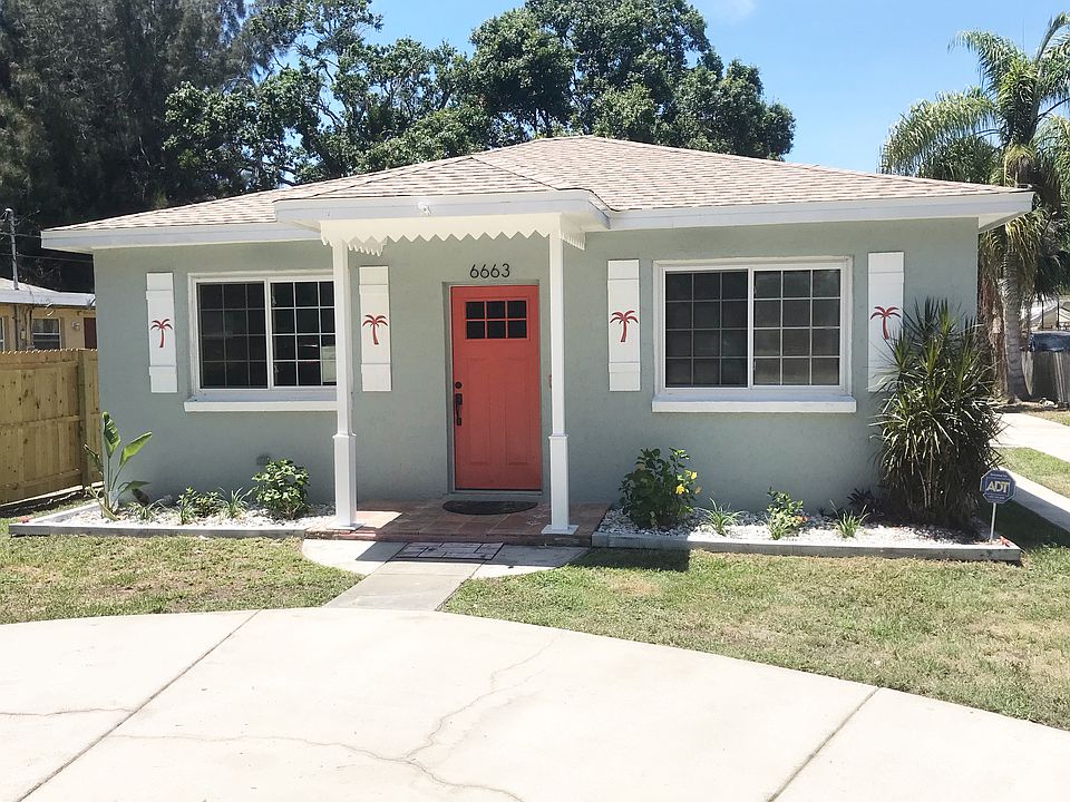 Live in the heart of down town New Port Richey in this newly renovated house sitting on a 1/4 acre lot. Bring your RV and boat. Brand new roof, new kitchen, new bathroom, new floors along with the original hard wood that's just been refinished, new fence etc.... The house is a 2/1 with a bonus room in the back that can be easily used as a bedroom, dinning room, office... The property has two buildings in the back. One is a metal shed and one is a much larger wood frame building that can be used as a workshop. Both have electric. Situated on beautiful River Rd just minutes from the boat ramp and down town New Port Richey. If you aren't aware of this city's ongoing transformation, look it up!