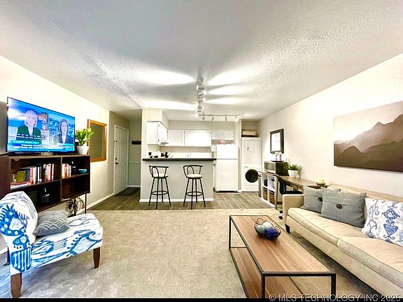 Discover this very nice 1-bedroom, 1-bath studio condo located near Riverside Drive and Tulsa Hills. This charming unit features laminate flooring, a cozy carpeted bedroom/living area with a walk-in closet, and an open layout that flows into an updated kitchen complete with a stove, washer, and dryer. Sold 'as is' with furnishings.