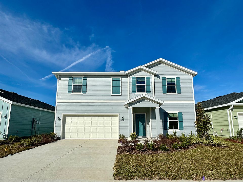 This charming cottage-inspired home boasts horizontal and shake-shingle elements, decorative window shutters, and a classic gable roofline for timeless curb appeal.