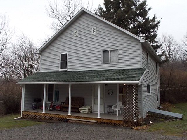 Country living with 4 acres and a remodeled 2 story home. Owner has replaced roof, siding, windows (except 3), electric service, rear porch (composite decking), some carpet, paining, doors and added pellet stove since 2005. Owner primarily uses pellet stove to heat house supplemented by a small electric heater. Oil furnace functional, but has not been used for several years. Nice side yard area and wooded rear yard. Property has been well maintained. Nice separation from neighbors. Large room sizes. Four bedrooms on second floor. Garage is in fair to poor condition.
