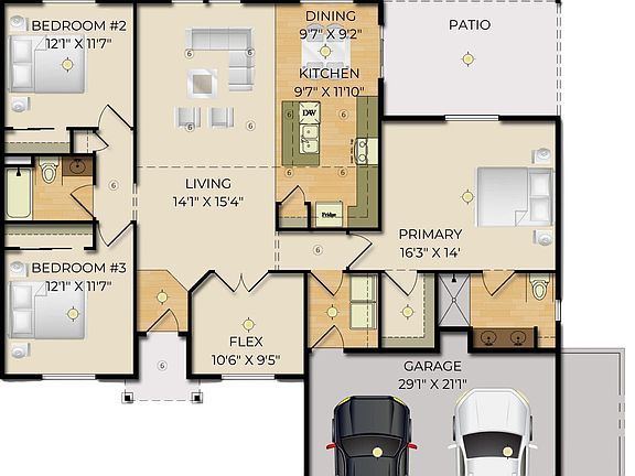 - Included: Dishwasher, Disposal, Microwave, Range/Oven