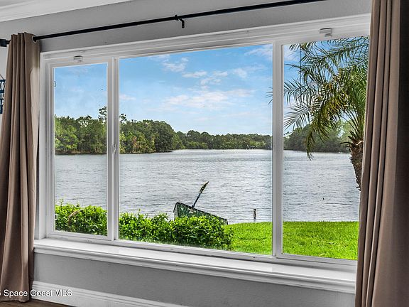 Rare Opportunity to Live on the Largest Lake in Port St. John! Enjoy stunning lakefront views from the kitchen, bonus room, and bedrooms - including the primary suite. This concrete block home offers nearly 2,600 sq ft of living space, on .40 acre corner lot at end of street. No HOA - Bring your Boats & RVs! The split floor plan provides privacy, primary suite located on the opposite side of house. Roof Only 6 y/o (Oct 2019) & Newer Double-Insulated Vinyl Windows, providing energy efficiency & sound reduction. Brand-New 2025 Kitchen Appliances. Modern Upgrades in 2023 include tile plank flooring, new interior doors, recessed lighting, fresh paint, crown molding, baseboards, and window sills. All main living areas have tile flooring. Indoor laundry, a large Christmas Tree closet, and a built-in speaker system throughout the home and garage. Covered back porch with hot-tub hookups & a workshop (powered & air-conditioned). The perfect blend of space, upgrades, and waterfront views!