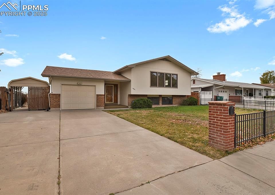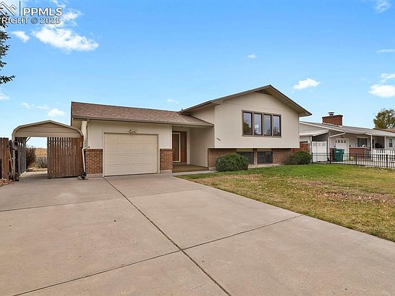 Welcome Home! Discover this well cared-for split-level gem in the heart of Widefield Country Club Heights — perfectly located near Fort Carson, the Fountain Creek Nature Center, Mesa Ridge Parkway shopping, and quick access to I-25, Powers Blvd, and Highway 85/87 for easy commuting anywhere in town. Lovingly maintained over the years, this home is ready to welcome its next chapter — and its next happy homeowners. Featuring 5 bedrooms and 3 bathrooms, this spacious home sits on a large lot with mountain views, no rear neighbors, and direct access to open space. You’ll appreciate the 1-car attached garage, covered carport, and an extra-wide driveway with plenty of room for RV or boat parking. Step inside from the charming covered front porch to a warm and inviting entryway. Upstairs, you'll find the spacious living and dining areas along with a kitchen that is perfect for gatherings and everyday living. You’ll also find 3 comfortable bedrooms, a full hall bath, and a primary bedroom with a private ¾ bath. Downstairs, enjoy a spacious family room with a cozy fireplace, two additional bedrooms, an updated ¾ bath, and an oversized laundry room. Garden-level windows fill the lower level with natural light, creating a bright and cheerful atmosphere. This move-in-ready home blends comfort, convenience, and character — all in one fantastic location. Come see for yourself and imagine the memories waiting to be made here!