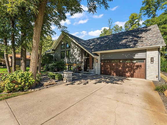 This beautifully updated home warmly welcomes you in for the Holidays! No need to set up lights for the holidays, seasonal color changing lights are recessed into the eaves, just use the app. This meticulously landscaped bi-level offers three bedrooms and three bathrooms and has been renovated throughout. While originally renovated as a forever home, plans have changed. The main level has been opened and with its cathedral ceilings and large living room's vast windows it offers abundant natural light. The raised Bedroom Suite is steps above the main level and has ample storage with double closets, a nook closet, a large shower in the 3/4 bathroom with skylights and heated floors. The kitchen has a built-in double oven, countertop gas range, and cooper farmhouse sink. The sliding doors from the kitchen lead to the deck that overlooks your outdoor oasis. Lower level has bonus room with a home theater that controls the blinds, a gas fireplace, and a wet bar with mini fridge. You will also find a 3/4 bathroom, laundry room with sink, office, with media closet and utility room with storage space. The backyard oasis has plenty of patio area, a heated built-in pool, hot tub, custom gazebo with all-weather TV and fireplace, outdoor kitchen with mini fridge, separate seating with a gas fire pit table. Find outside tranquility in the sound of water features in the front and back yards. The Horse Heritage Trail abuts to the rear of the property. All this and close to Prairie Duneland Trail, Parks, Dining, Shopping, Highways, The National State Dunes and just a short commute to the South Shore line to Chicago.