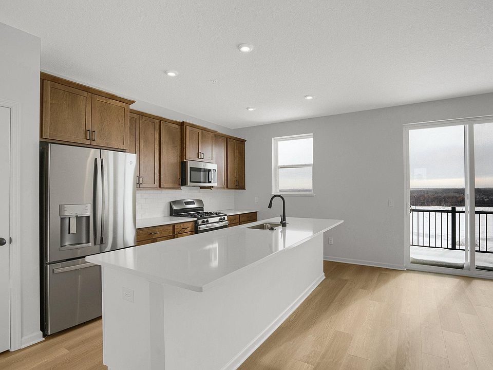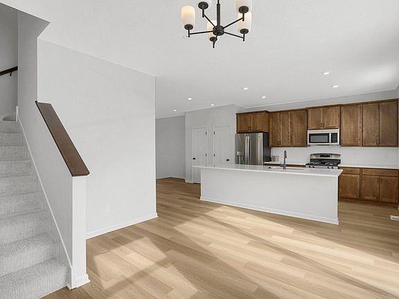 Welcome to the luxurious Hudson Townhome in Woodland Cove. This desirable Townhome includes three bedrooms, three bathrooms, & two car garage. Open space concept streams nicely through the main level with LVP flooring. Your family room is accented by a gorgeous electric fireplace & large window. The kitchen boasts a center island flanked by perimeter cabinets that are finished off with gorgeous countertops & accented by stainless steel appliances. All three bedrooms are on the upper level giving you that added privacy you desire. Roomy owner’s suite has a private bathroom and 2 walk-in closets. Just down the hallway you will find your laundry, full bathroom, & two additional bedrooms. Enjoy the endless amenities living in our award winning Woodland Cove community including walking/biking trails, pool, clubhouse, & several playgrounds. Come visit today & discover the reason why everyone wants to live in our charming Woodland Cove Townhomes & why these Townhomes are selling fast now!10+