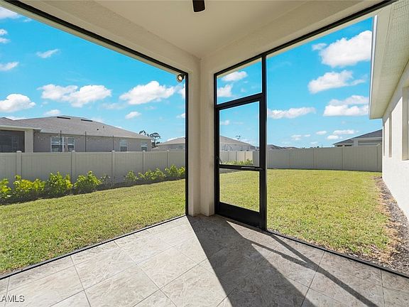 2023 nearly new build, with countless upgrades and beautifully maintained 3-bedroom, 2-bath home offers 2000 plus square feet of well-designed living space, complete with a 3-car garage featuring durable epoxy flooring. Sold turn-key this home is a true standout with every upgrade totally over $40,000 in additions. The open-concept living area boasts high ceilings and stylish plank tile flooring throughout, creating a bright and inviting atmosphere. The modern kitchen is equipped with quartz countertops, shaker cabinets, a spacious island, and premium stainless steel appliances—including a top-tier KitchenAid refrigerator. The spacious primary suite features an elegant tray ceiling, while the luxurious en-suite bath includes a large glass-enclosed shower with a built-in bench, dual vanities, and an expansive walk-in closet. Enjoy outdoor living on the oversized screened lanai and partially fenced backyard. Located in the desirable Coves of Estero Bay, residents benefit from low HOA fees and access to a community pool and clubhouse. With its prime location, this home offers convenient access to RSW Airport, Gulf Coast Town Center, and Southwest Florida’s beautiful beaches, making it an exceptional choice for comfort and convenience.