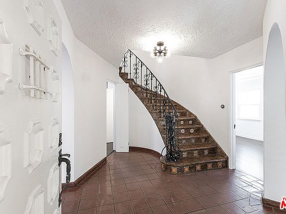 BEAUTIFUL AND SPACIOUS TWO-STORY SPANISH WITH FULL BASEMENT/PLAYROOM/MEDIA ROOM IN BEVERLY GROVE. Enter this character rich home through a covered front porch into a dramatic foyer leading to a step-down living room with fireplace, beamed ceiling and leaded stained-glass window. There is a formal dining room with cross beam ceiling and a remodeled eat-in kitchen with stainless steel appliances and quartz counters. The first level boasts an ensuite bedroom with full bath, a large family room with fireplace, entertainment center and fridge. The second level features a master suite with adjacent small bedroom/office/sitting room, deco bath and balcony, and two additional bedrooms with full bath. There is a large finished basement with laundry hookups and sink. Additional features: central AC, recessed lighting, plantation shutters, period details including French windows, peg-and-groove hardwoods, period hardware/tile/built-ins, a two-car garage, gated driveway/carport, patio and yard.