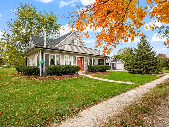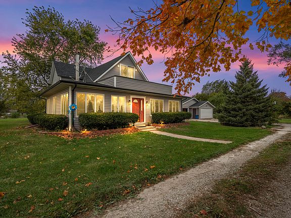 This property offers the perfect blend of peaceful country living and convenience to town. From the moment you arrive, you'll feel the calm of open fields, wide skies, and the simple beauty of nature all around you. Every morning feels special here—enjoy a quiet cup of coffee while watching the sun rise over the open countryside, as deer and other wildlife peacefully wander through the yard. The views are spectacular in every season, with the colors of fall, the sparkle of winter snow, and the lush greens of spring and summer all framed perfectly by the home's many windows. The beautiful yard provides the ideal setting for bonfires under the stars, family get-togethers, and endless outdoor fun. Mature apple, pear, black walnut, acorn, and mulberry trees bring both shade and charm, while the open space gives you room to garden, play, or simply breathe in the fresh country air. Inside, the home welcomes you with warmth and character. The cozy wood-burning fireplace is the centerpiece of the living room, offering comfort during the colder months. The spacious kitchen is a standout feature with ample cabinet storage, generous counter space, and an inviting dining area—perfect for hosting both small and large gatherings with family and friends. The main floor includes two comfortable bedrooms, a full bathroom, and convenient main-level laundry. Upstairs, you'll find a third bedroom, a second bathroom, and a versatile den that could serve as a fourth bedroom, home office, or creative space. Car enthusiasts and hobbyists will love the large 3-car detached garage, offering plenty of space for vehicles, tools, and projects, as well as extra storage for all your outdoor equipment. With just over two acres of land and over 2,000 square feet of living space, this acreage offers the perfect balance of tranquility, functionality, and beauty. Whether you're drawn to the country lifestyle, love watching wildlife, or simply crave a peaceful place to call home—this property is truly something special.