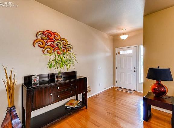 Gorgeous two story 3 bed + office home that is an entertainer???s dream! As you enter you are greeted with beautiful hardwood floors that flow throughout the main level. The kitchen is a chefs dream and boast a beautiful island, granite tile countertops, hardwood floors, oak cabinetry and overlooks the lovely family room with gas fireplace. You are sure to enjoy the main level office they could certainly be used as flex space. The Huge Master bedroom features a 5pcs bath with a huge walk-in closet with custom shelving. The home features great outdoor entertainment space with two separate patio's to include a gorgeous stamped concrete patio. The unfinished basement is the perfect place to expand and grow if needed. A fantastic location that is close to eateries, entertainment and offers easy access to Petersen AFB, Schriever AFB and the Air force Academy.