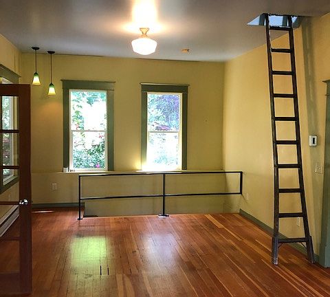 Attic loftSmall barnFenced pastureLight filled bedroomsGiant fenced garden areaDetached studio