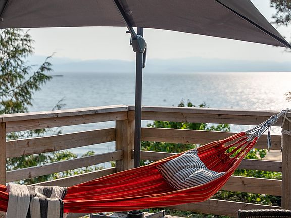 Expansive front deckPrivate hot tubNew flooringFenced yardNew heat pumpImproved beach accessLarge private viewing platform