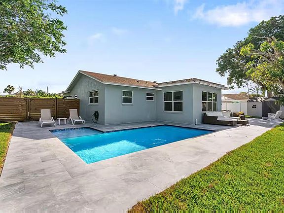 Stunning 4-Bed, 2-Bath Saltwater Pool Home w/ fenced yard in East Delray Beach - Available furnished/unfurnished for Short/Long-Term Rental. Welcome to this beautifully renovated single-family home offering comfort, style, & a true South Florida lifestyle. This spacious 4/2 property is in perfect condition & designed w/ both relaxation & entertainment in mind. Internet up to 300 mps, pool, lawn, & pest control are included for added convenience. Interior Features: Fully renovated w/ newer flooring, countertops, kitchen cabinetry, & appliances.Master suite with king-sized bed, walk-in closet, and private bath. Washer/Dryer inside. Additional bedrooms: one queen, one full, & one full with trundle. Bright open living and dining areas, plus a sunny Florida room with a private work space. High-speed Wi-Fi, Smart TV, board games, books, toys, and a basketball hoop for entertainment. Air conditioning, ceiling fans, and full interior laundry room. Outdoor Oasis: Brand-new saltwater swimming pool with new deck. Large, private backyard featuring BBQ grill, fire pit, outdoor seating, and yard games. Oversized yard with new shed for storage, plus partial garage that can be used as a workshop, game room or for additional storage. Parking for up to 6 cars, with enough space for your boat or RV. Level 2 EV charger with J1772 connector (adapter required for Tesla). Energy & Efficiency: Impact windows and doors for peace of mind. New insulation (2022) and solar panels installed for energy efficiency and lower electric bills. Prime Location: Just minutes from pristine Delray Beach and Downtown Atlantic Avenue. 10 minutes to Boca Raton's Mizner Park dining and shopping. Close to golf courses, parks, and outdoor activities. Quick access to I-95, only 25 minutes from Palm Beach Airport and 35 minutes from Fort Lauderdale Airport. Prime location, don't miss out on this beautiful single home. Flexible Rental Options: Available furnished or unfurnished. Short-term or long-term leases welcome. This property combines modern updates, energy efficiency, and resort-style outdoor living in one of South Florida's most desirable locations. Don't miss your chance to call this beautiful East Delray Beach home your own.