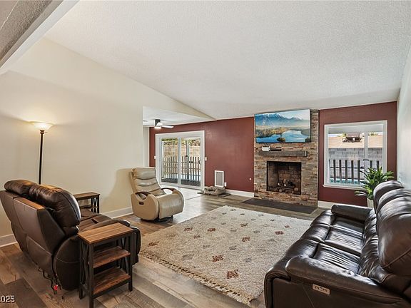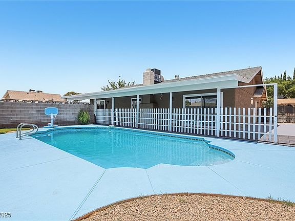 Immaculate Single-Story Del Prado Gem with Pool and Side-Yard Parking! This nicely updated 4-Bedroom Home offers a bright Living Room with vaulted ceiling and a custom stone fireplace, a Dining Room area that flows easily out to a large Covered Patio with desired sun orientation—ideal for Indoor-Outdoor Living. The updated Kitchen features custom cabinetry and breakfast bar. The spacious Primary Suite offers backyard access, while 3 additional Bedrooms provide space for Family, Guests or an Office. Enjoy Newer Windows, HVAC, Roof, Pool Plaster, plus so many other Improvements throughout, and Low-Maintenance Landscaping. Spend time relaxing in your private Backyard with a refreshing Pool and room to Play or take advantage of the gated Side Yard—perfect for your RV, boat, or toys. 2 Car Garage, No HOA and just minutes from Lake Mead, Downtown Boulder City, Dining, Parks, Golf Courses and More--this offers everything you have been looking for!