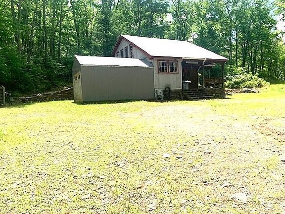 This cabin is ready for hunting season. Has 4 beds that convey upstairs in the loft. Nice Vulcan propane oven. Beautiful view of "Devils Backbone" and is in Blue Grass. Nice large garage, woodshed. Owner pumps water to the hunt camp from the stream. Agent has pictures of the progress of the cabin being built. Will email on request.