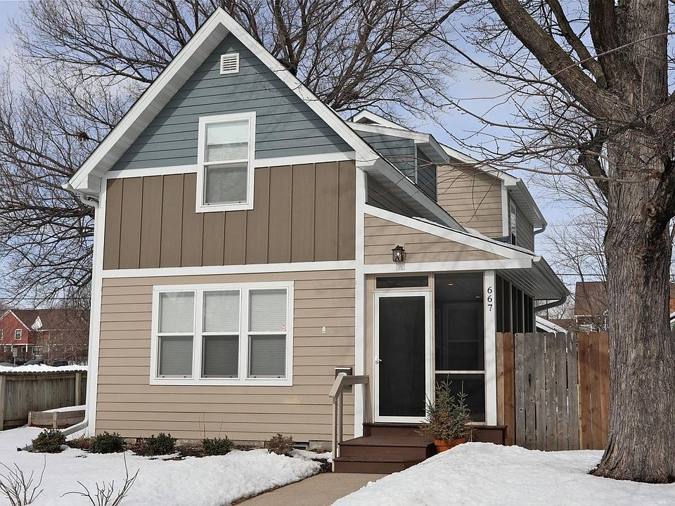 Spectacular home in pristine condition in prime Summit-University location. Completely remodeled down to the studs by previous owner with an open floor plan perfect for entertaining. Comparable to new construction. LP SmartSide Engineered Wood Siding. Many additional updates accomplished by current owner. High end updated kitchen w/large island opens to dining room, living room w/added gas fireplace, and den. Main floor half bath. 3 bedrooms up, including master bedroom suite with 3/4 bath & walk-in closet + additional full bathroom up. Forced air heat & central A/C. Plentiful storage in lower level. Professionally landscaped yard with paver and bluestone patios and partial in-ground sprinkler system. Large front screened porch perfect for enjoying lazy summer afternoons. Oversized 2 car garage (24x22). A short walk to Mississippi Market and nearby shops & restaurants.