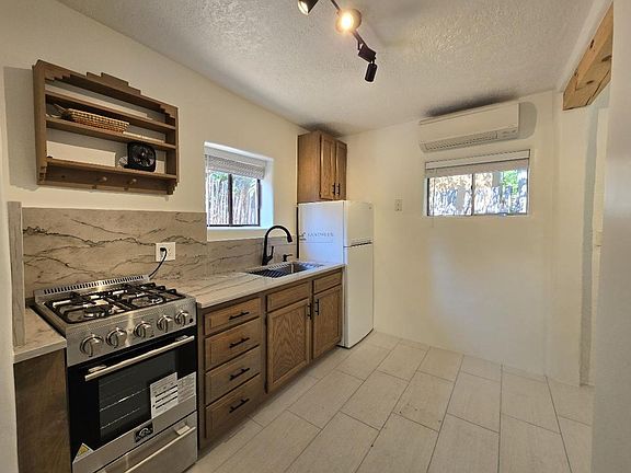 For added convenience, the casita comes equipped with an in-unit washer and dryer, eliminating the need for trips to the laundromat. The mini-split heating and air-conditioning system ensures year-round comfort, allowing you to enjoy Santa Fe's diverse seasons to the fullest.
