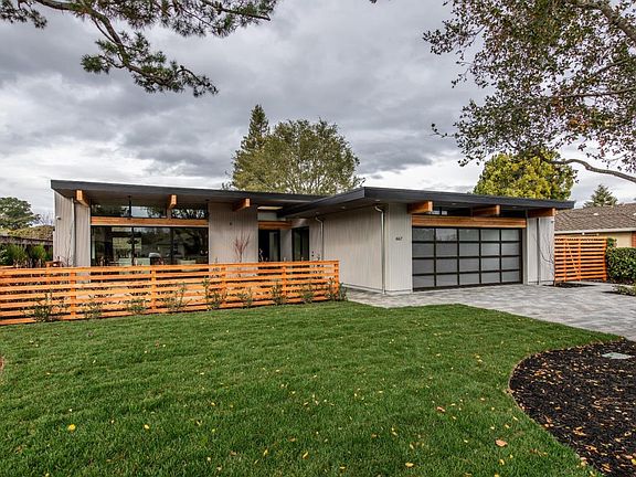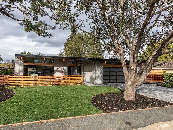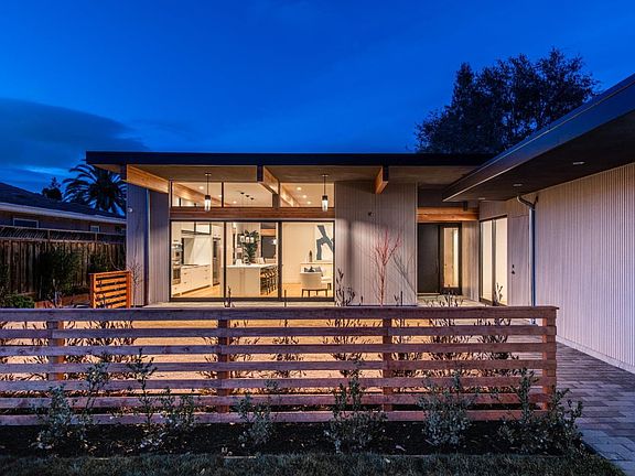 A Modern Day Eichler in a serene and quiet neighborhood, stunning new construction, open concept floor plan, 2 great living spaces, white oak floors, 10-ft ceilings with open beams. Award winning Los Altos schools!