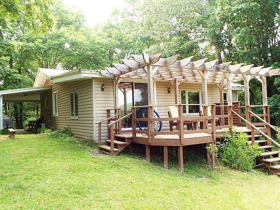 Beautiful long range views with this great cabin! This cabin has a newer roof and HVAC system, both upstairs bathrooms have new tile and have been renovated. A full unfinished basement with bathroom offers a lot of room for expansion. Outside you can enjoy a firepit, swing, grapevines, apple tree and cherry tree. This property has a two car garage and a carport for plenty of parking.