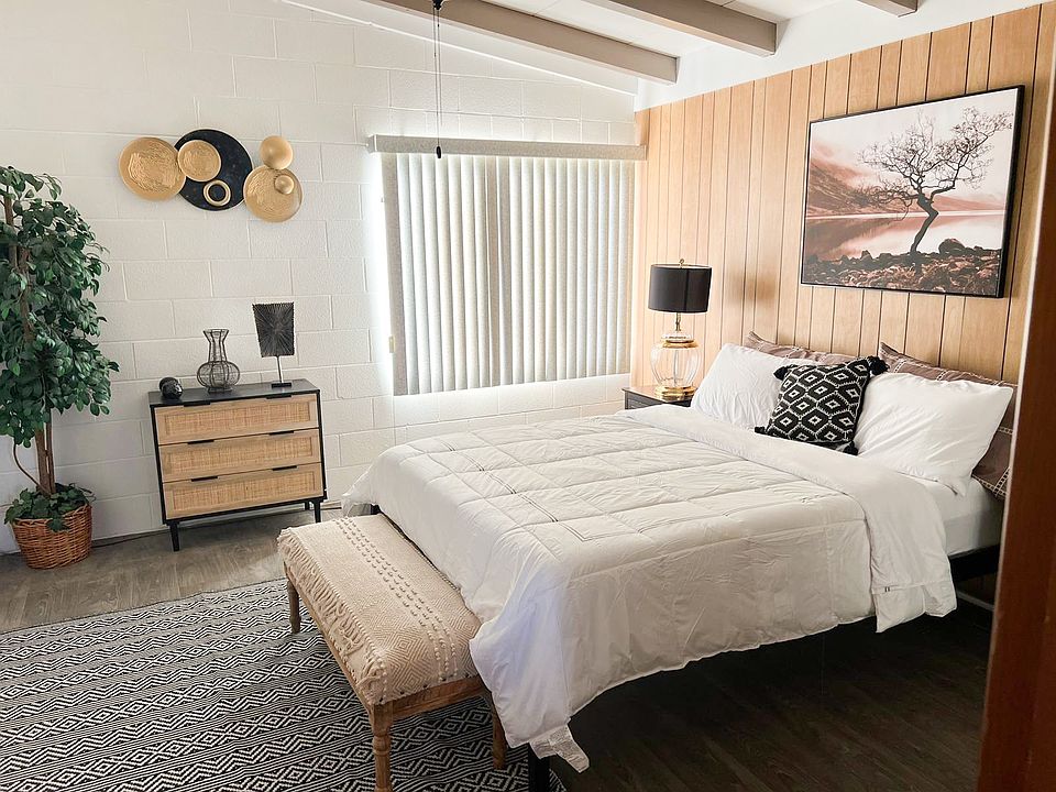 Well kept 2 bedrooms 1 bathroom house with appliances. Huge yard space for outdoor activities and a spacious living room with contemporary windows for a beautiful sky observatory. You will be able to observe the beautiful sunset from the kitchen window. The world-famous Joshua Tree National Park is within walking distance, and minutes away is a desert oasis and the downtown of 29 palms.