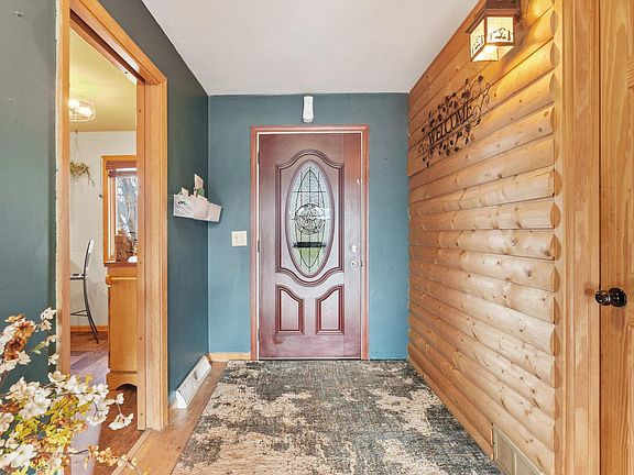 Wake up to peaceful creek views and the quiet charm of life on the golf course—this updated and well-maintained rambler offers the perfect blend of scenic beauty and everyday comfort. Set on nearly an acre with mature fruit trees, this spacious home welcomes you with warmth and style. The open living and dining area is filled with natural light from large windows, and a beautiful gas fireplace adds a cozy focal point. The stylish eat-in kitchen makes everyday living and entertaining easy. You'll find three bedrooms on the main level—one without a closet—and two more in the partially finished full lower level, offering flexibility and room to grow. Just off the back, the 3-season porch connects to a large deck overlooking a private yard with a paver patio and built-in firepit—ideal for relaxing or hosting. The lower level also features a laundry room with a pet washing station, a workshop, and plenty of space for storage or future finishing. With extras like surround sound, a metal roof, added insulation, a large shed, and a new furnace and A/C (Oct. 2024), this home has the space and setting you’ve been waiting for.