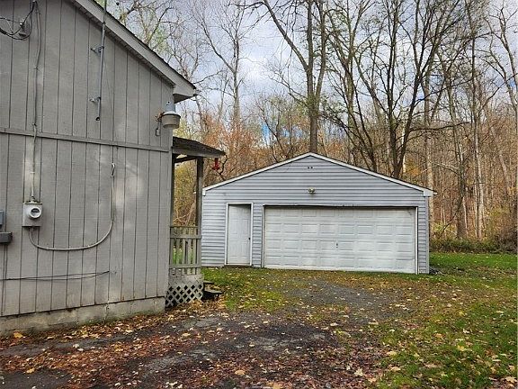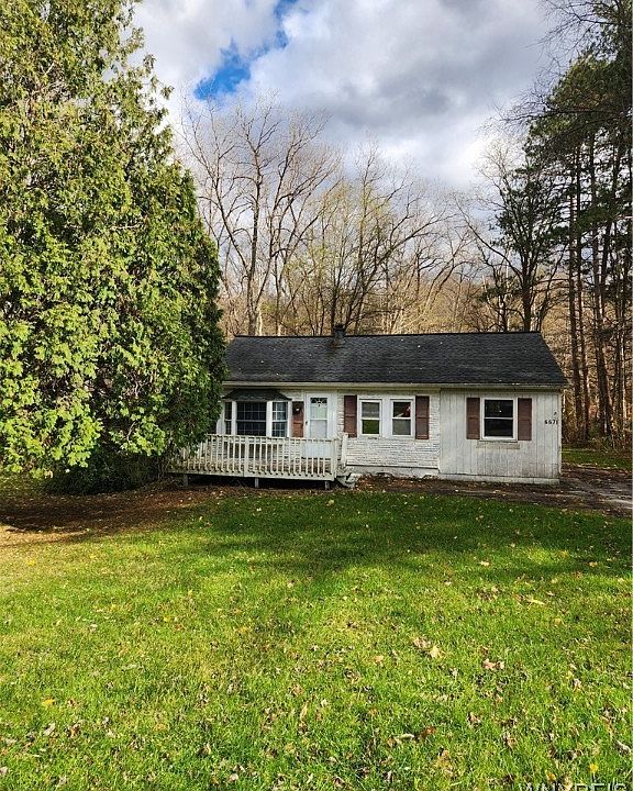 Discover the potential in this 2-bedroom, 1-bath home located lot surrounded by trees with direct creek frontage—perfect for fishing or relaxing outdoors, located conveniently near NY 400. The property includes a spacious 2.5-car garage with an attached workshop, offering ample storage and workspace. Newly installed reverse osmosis water filtration system, ensuring clean, high-quality water throughout the home.