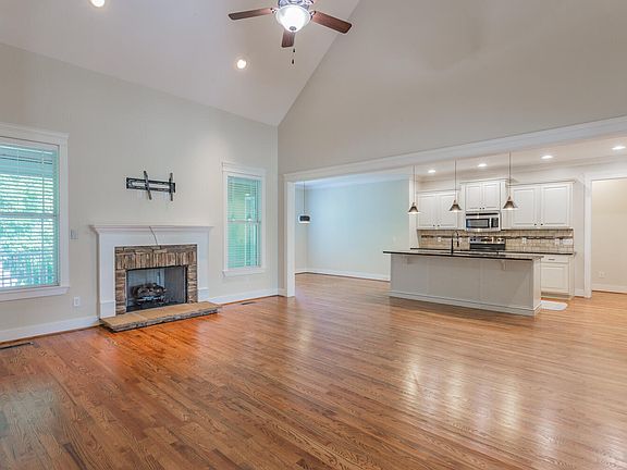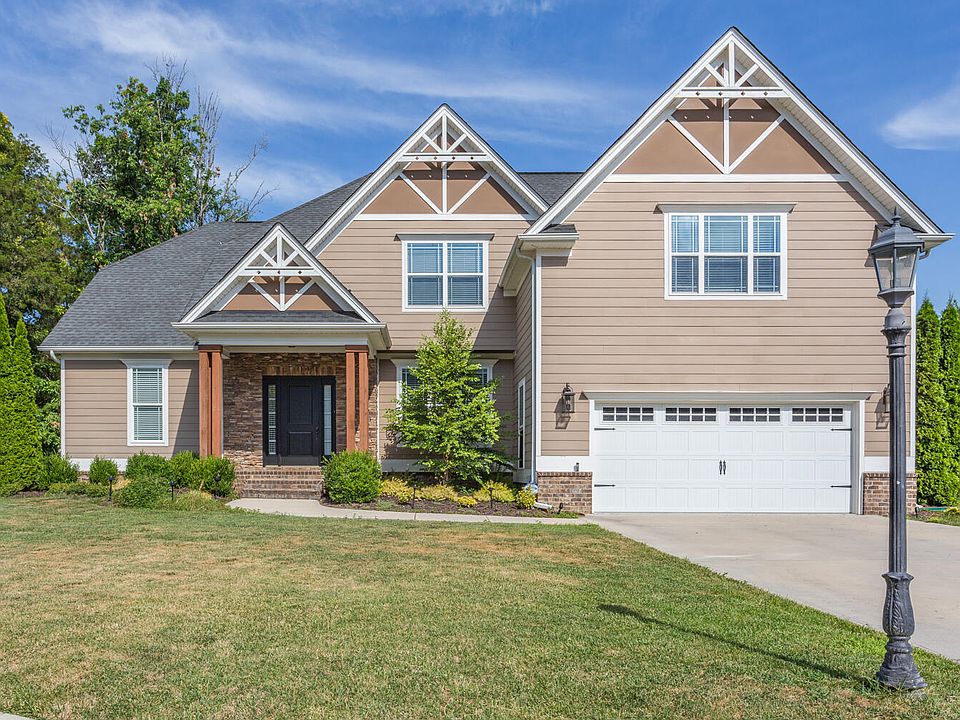 Step into this stunning home with a craftsman-style layout showcasing 5 bedrooms and 3 full baths. The 5th bedroom is currently utilized as a bonus/media room. This low-maintenance residence boasts a blend of brick, board, and batten Hardie board, shakes, and stone elements. The great room impresses with a high ceiling, an open concept, and a charming gas log fireplace with a handcrafted mantel. Indulge your culinary skills in the gourmet kitchen equipped with granite countertops, tile backsplash, custom cabinetry, under-cabinet lighting, and stainless-steel appliances. The master suite offers a cathedral ceiling, a walk-in closet, recessed and decorative lighting, a double bowl vanity, a tiled shower, and a jetted tub. Another guest bedroom and full bath are conveniently situated on the main level. Upstairs, the additional bedrooms are designed for privacy and functionality. Enjoy the convenience of a 2-car garage, a screened porch, an open deck, and numerous other features. Upgrades include custom pull-out drawers in the kitchen and master bathroom, custom shelving in the laundry room, a custom closet in the master, an outdoor fireplace with a sitting area/patio, enhanced backyard landscaping, additional patio pavers for grilling, a second outdoor sitting area, drainage systems in the backyard, and an outdoor fire pit with hanging lights by the creek/in trees. This home offers easy access to I-75 and I-24, with proximity to Cambridge Square, Embrace the comfort and luxury of this exquisite craftsman-style residence.