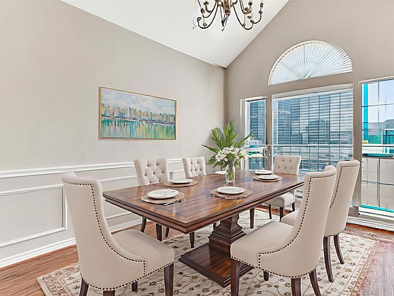 Stunning stone wood-burning fireplaceUpdated fixturesFresh neutral paintElegant formal dining roomCeiling fansBuilt-in shelvingOversized family room
