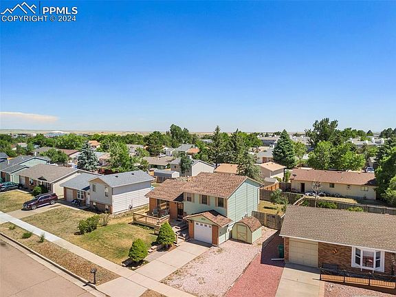 Nestled in Cimmaron Hills, this tri-level home blends comfort and functionality. A custom-built deck welcomes you, ideal for summer evenings. The main level offers ample space for living and dining, featuring stainless steel appliances in the kitchen and a perfect place for a breakfast nook. Upstairs there are three spacious bedrooms including a primary bedroom with built-ins and private bathroom access. The lower level, currently a bedroom suite, offers versatile space that can be used as a family room as well. The backyard is privately fenced while the patio is the perfect entertainment space. There are two sheds for additional storage on the property. This home has the perfect location near schools, shopping, and parks, and has recent upgrades including a new roof and solar panels installed in 2023 which have been paid in full and keep the utility bills minimal. This home is move-in ready with newer paint and upcoming carpet installation in the primary bedroom that will be completed within the next 2 weeks. Don't miss this charming opportunity!