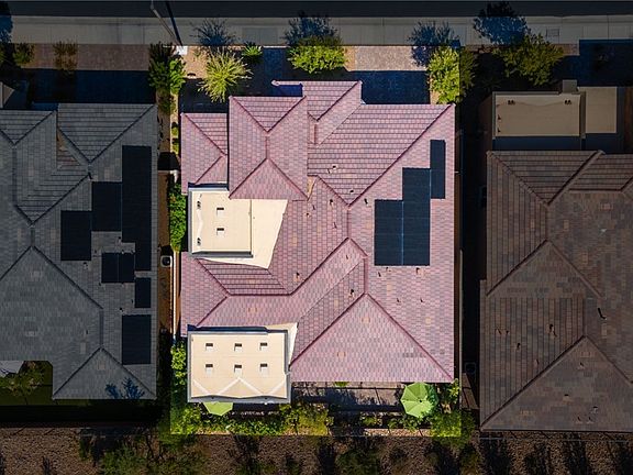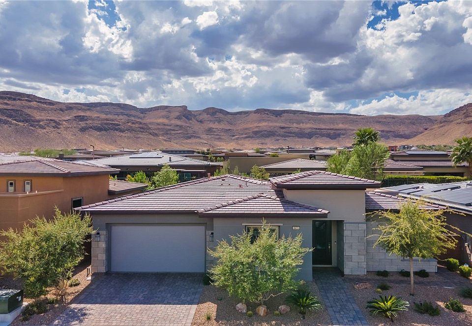 Discover luxury living in the guard-gated 55+ community of REGENCY by Toll Brothers a nationally trusted builder located in Summerlin, Nevada. This exquisite home offers 2,400+ square feet of living space, featuring 3 bedrooms, 2.5 bathrooms, and a 2-car garage. The primary bedroom suite is thoughtfully separated from the secondary bedrooms providing an ideal layout for guests or a dedicated office space. The well appointed kitchen with high-end appliances, complete with a cafe area and extended cabinets perfect for entertaining or a quiet night in. Enjoy a formal dining area for hosting holiday get-togethers. Designer touches include elegant tile flooring, sophisticated tray ceilings, and beautiful stonework throughout all complemented by impressive 10-foot ceilings. Solar electric panels are owned & keep utility bills low. This prime location is near Downtown Summerlin, Durango Stations Casino, Southern Hills Hospital, Harry Reid International Airport & prime 215 beltway access.