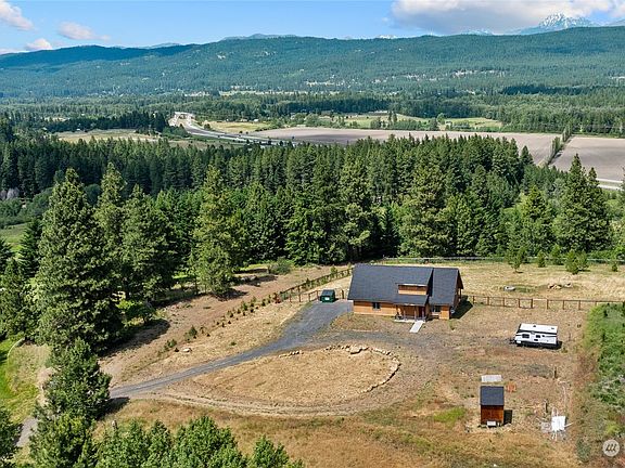 Charming home/cabin with just over 3 acres, is perfect for short term rental, vacation get away or for full time home. It has stunning views of the Stuart Mt range and only 1 hour from Seattle, plus 3 RV sites allows more space to include all your friends. Back yard is fenced, perfect for your 4 legged friends. The kitchen is granite counter tops, knotty alder cabinets & stainless steel appliances. Upstairs has 2 extra rooms that could be used as another bedroom, bonus room or office. There are tons of windows to allow for a lot of natural light. No HOA!